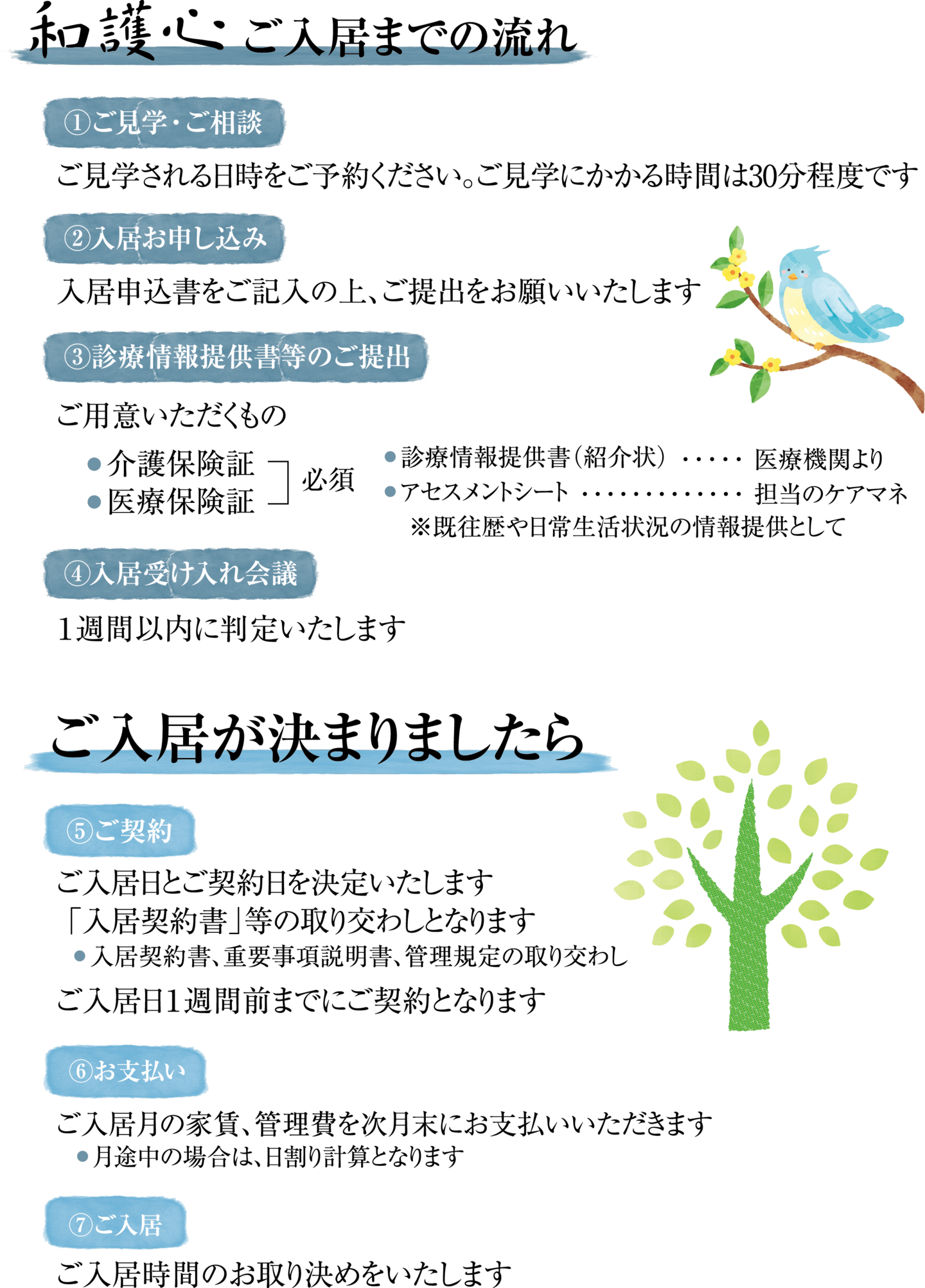 ご入居者さまを寝たきり状態にせず、その人らしく過ごせるようサポートいたします。ご入居さま・ご家族さまの想いによりそい、その心を職員みんなで和になって護っていきます。